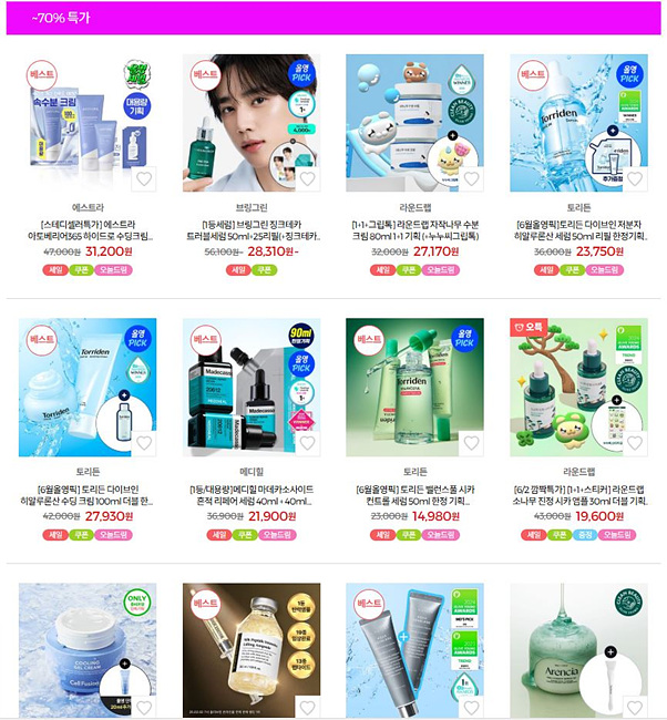 최대 70% 할인부터 신규 특가, 다양한 쿠폰, 그리고 브랜드별 기획세트까지, 이 정도면 ‘안 사면 손해’라는 말이 절로 나올 정도입니다.
