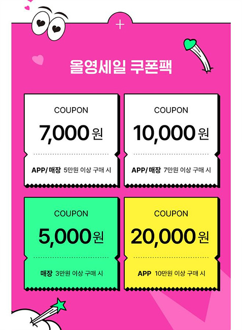 - ‘올영세일 쿠폰팩’: 최대 4만2000원까지 할인 가능한 쿠폰 세트!