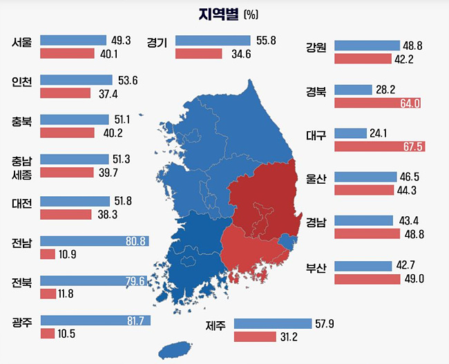 어떤 지역이 어느 후보를 지지했는지 확인하는 것은 향후 지역 정책, 예산 배분, 공공사업 등에 큰 영향을 줄 수 있죠.